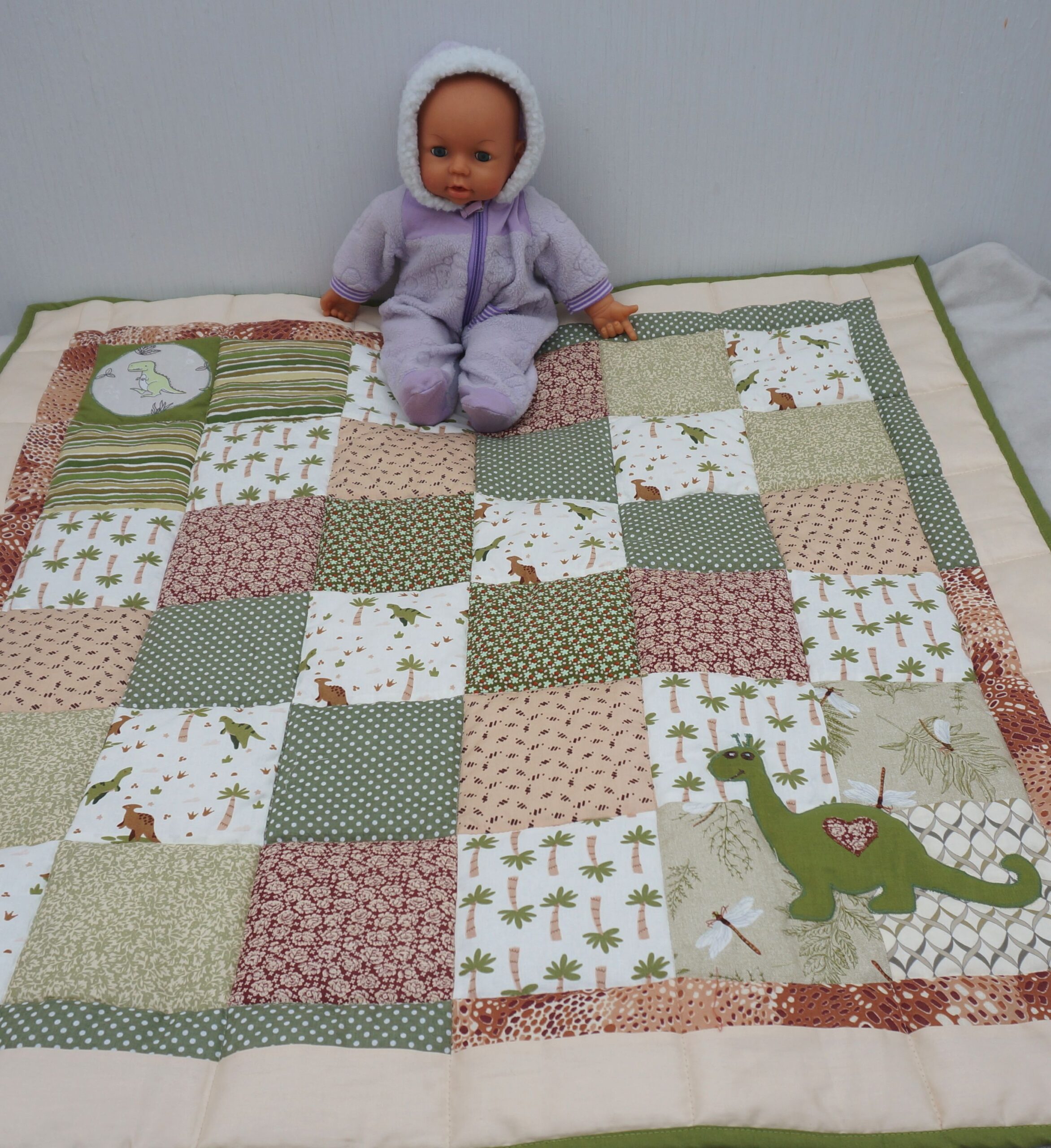 Beebitekk on õmmeldud puuvillastest kangastest, sees mahuline polüestervatiin. Dinosaurus on aplikatsiooni tehnikas.