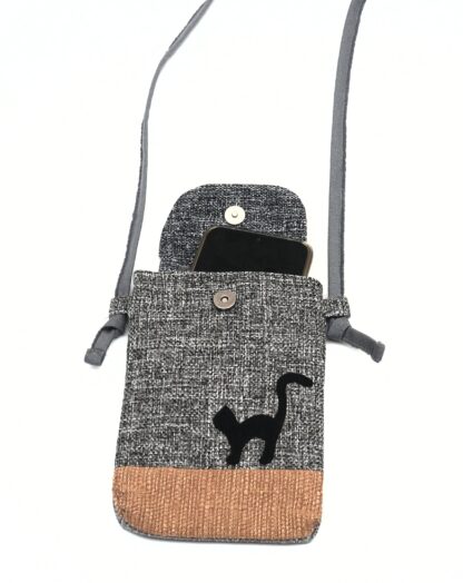 Musta kassi mobiilikott on äge, humoorikas ja samas praktiline aksessuaar nii suurtele kui väikestele.