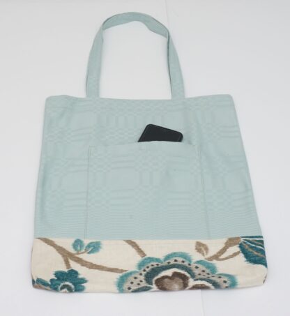 Turukott on õmmeldud tugevast puuvillasest mahedat rohekassinist tooni kangast. Põhi toonilt sobivast puuvillasest mööblikangast. Kangad päritolult taaskasutus. Tugevad topeltõmblused hoiavad koti rebenemiskindlana. Taga on lukuga tasku asjadele, mis võks luku taga olla.