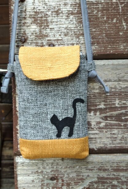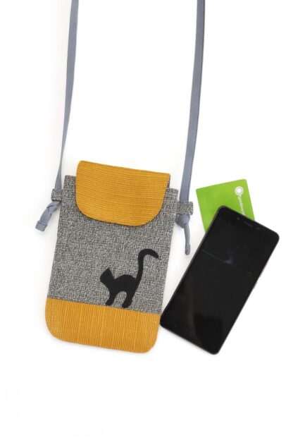 Musta kassi mobiilikott on äge, humoorikas ja samas praktiline aksessuaar nii suurtele kui väikestele.