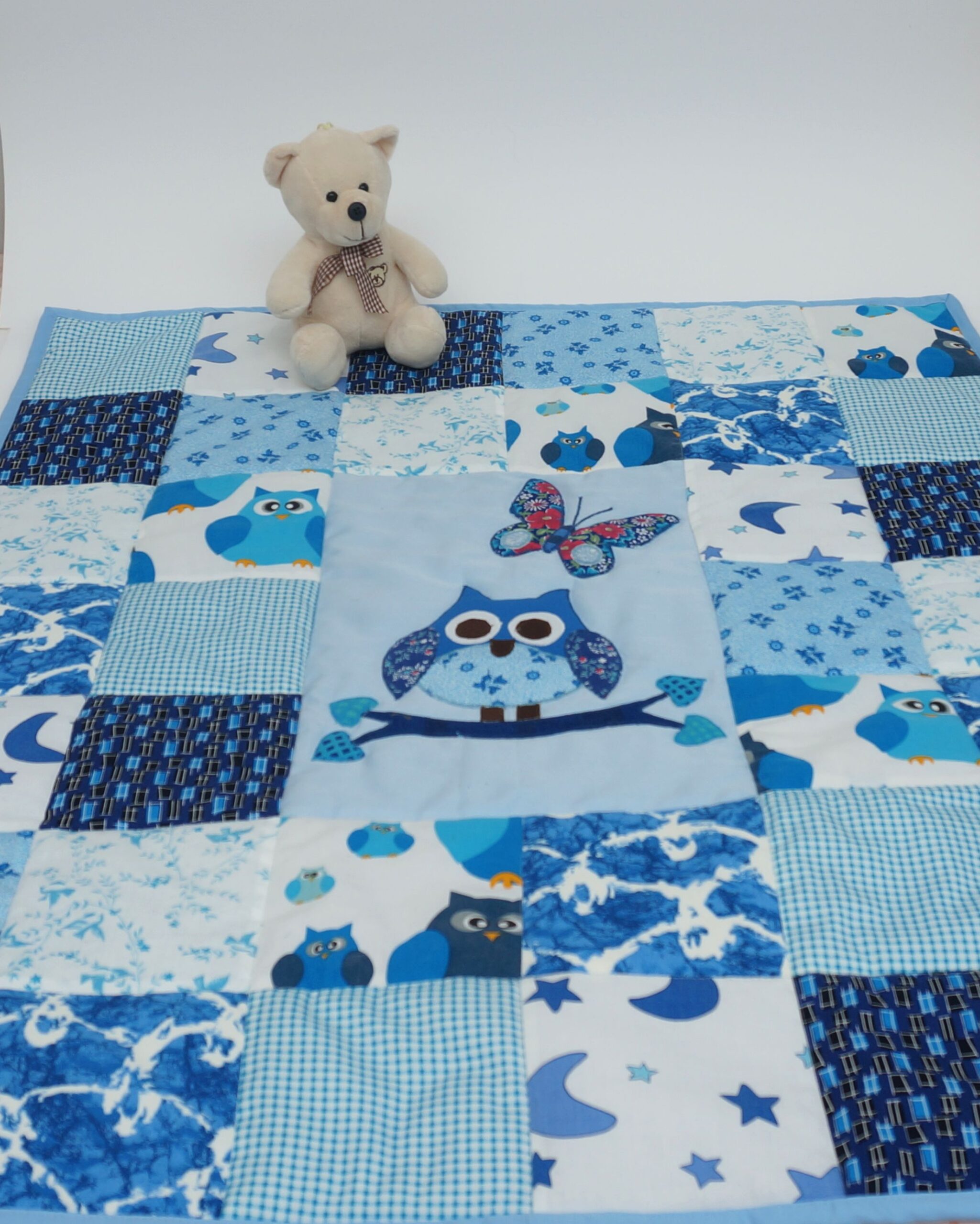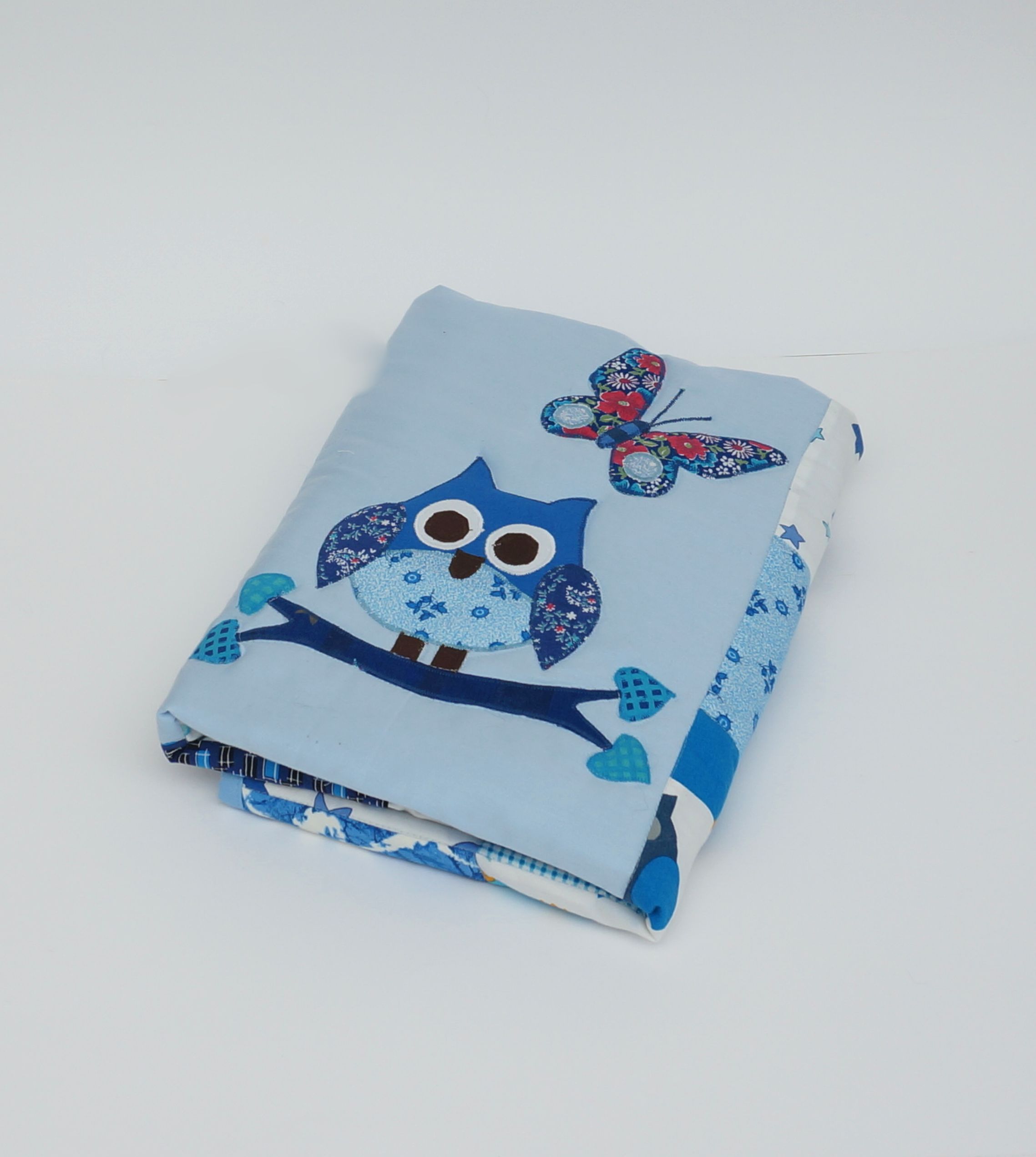 Sobib suurepäraselt beebi esimeseks tekiks ning on imearmas ja praktiline katsikukingitus. Õmmeldud on ta puuvillastest kangastest ning sees mahuline vatiin. Tekike on mõnusalt soe ja pehme. Öökull ning liblikas aplikatsiooni tehnikas.